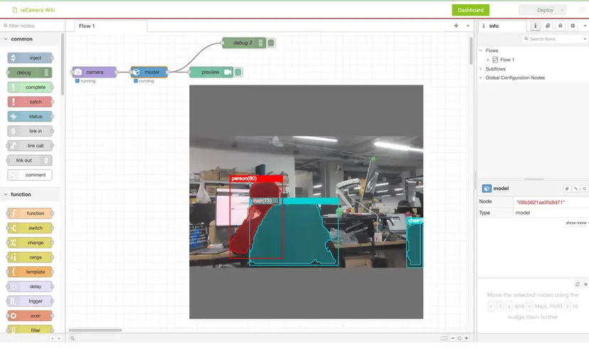 Integriertes Node-RED für Low-Code-Anpassung von Gimbal-Bewegungsabläufen.