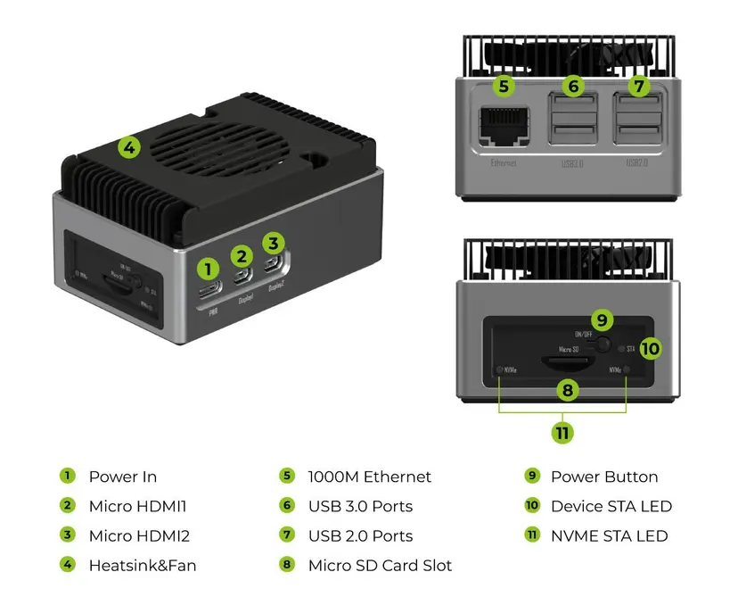 Angetrieben von Raspberry Pi 5 mit Quad-Core Cortex-A76 CPU und bis zu 16GB RAM.