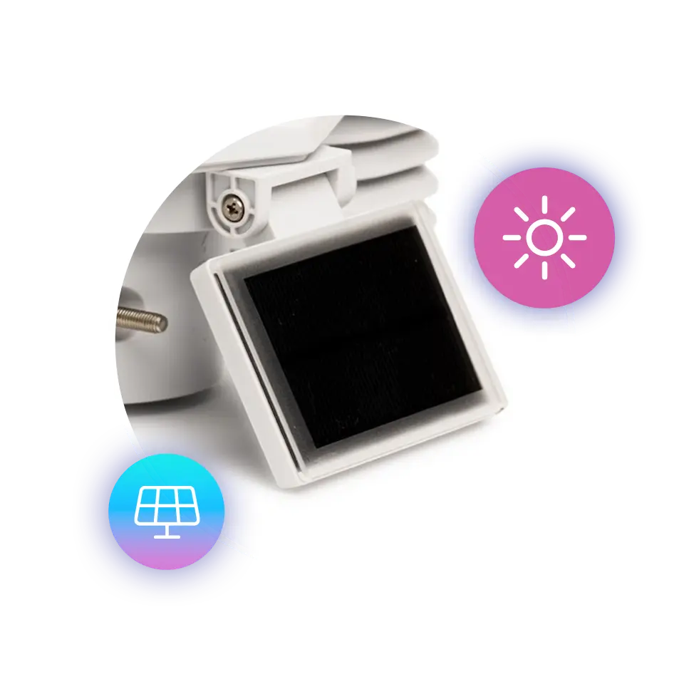 Ausgestattet mit einem Solarpanel und wiederaufladbaren Batterien, läuft das Gerät das ganze Jahr über mit einer Backup-Option über eine 1,5V AA-Batterie für zusätzliche Zuverlässigkeit.