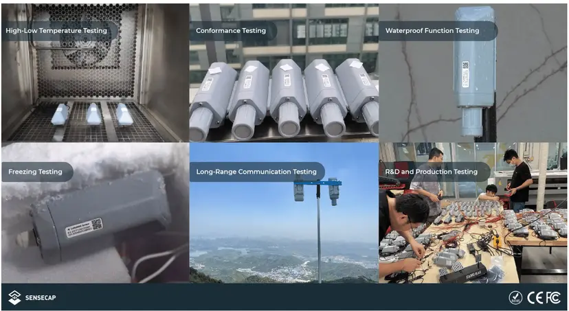 Die Sensoren können unter rauen Außenbedingungen eingesetzt werden. Um sicherzustellen, dass die Leistung und Haltbarkeit der Sensoren während ihrer gesamten Lebensdauer den Spezifikationen entspricht, wurde die SenseCAP S210X-Serie vor der Freigabe 6 Zuverlässigkeitstests unterzogen, die alle Anforderungen erfüllen, um auch unter extremen Bedingungen einwandfrei zu funktionieren.