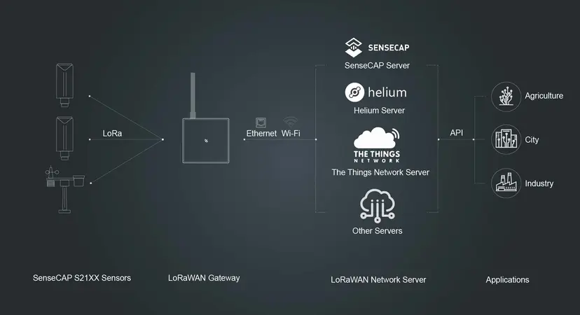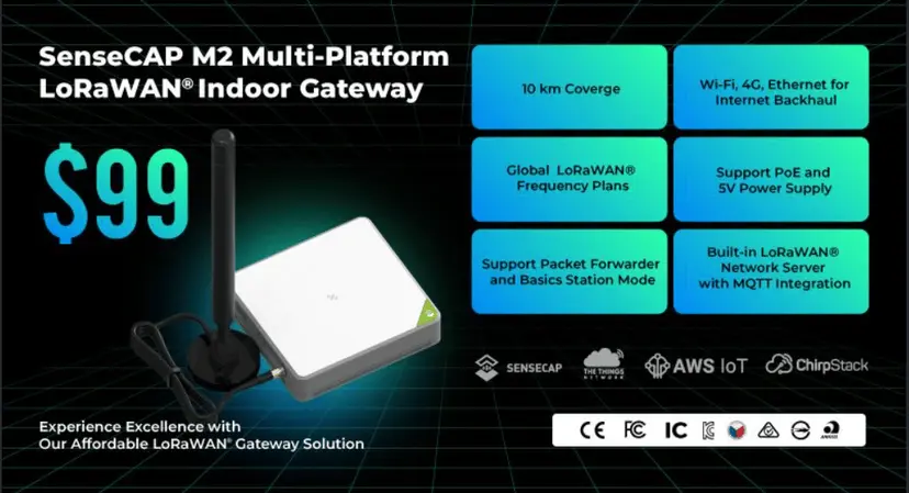 Option 2: Die Sensoren arbeiten in einem Standard-LoRaWAN-Netzwerk, wie z. B. The Things Network, Loriot, Chirpstack usw. (siehe SenseCAP Gateway Series).Empfehlung: Wir empfehlen das SenseCAP M2 Multi-Platform LoRaWAN Gateway, ein Standard-LoRaWAN®-Gateway, das mit verschiedenen Netzwerkservern kompatibel ist. Mit einem erschwinglichen Preis von 99 $ ist es eine wirtschaftliche und kostengünstige Lösung für die Einrichtung eines privaten LoRaWAN-Netzwerks.