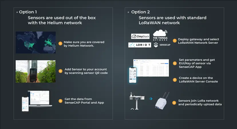 Für die Verwendung der Sensoren ist eine LoRaWAN-Netzwerkabdeckung erforderlich. Es gibt zwei Hauptoptionen: