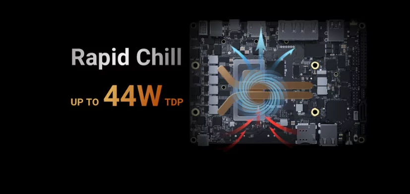 Grazie al suo sistema di raffreddamento avanzato, il processore di LattePanda Sigma mantiene costantemente un TDP (Thermal Design Power) di 44W ad alte prestazioni, garantendo stabilità e prestazioni costanti senza alcuna perdita di potenza nel tempo.