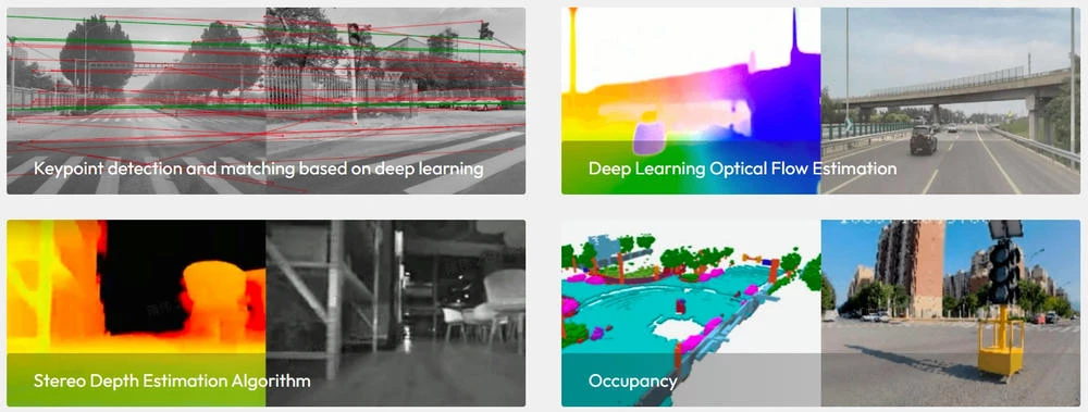 L’RDK X5 rende la percezione robotica più efficace grazie a doppi ingressi MIPI, garantendo la compatibilità con algoritmi avanzati di visione stereo. La sua Advantageous Algorithm Matrix utilizza il deep learning per assicurare una stima precisa dei movimenti e il matching dei punti chiave, offrendo prestazioni robuste anche in condizioni difficili, come scarsa illuminazione, controluce o texture deboli.