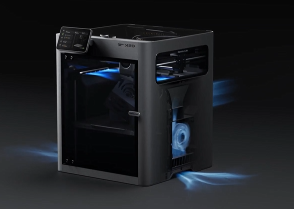 Yes. When printing PLA or PETG, the X2D activates the "Adaptive Cooling Mode". The exhaust fan and dual side exhausts work together to keep the chamber cool, preventing clogging of nozzle (heat creep) typical of closed machines when printing low temperature polymers.