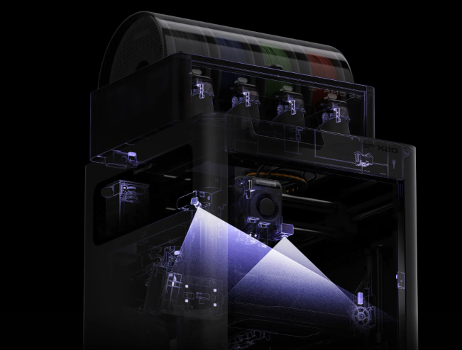 - 50 Micron Vision Encoder: Belts and mechanical components can lose precision over time. X2D's Vision Encoders detect the slightest drift in movement, compensating for it in real time to maintain consistent volumetric accuracy, even after thousands of hours of operation.