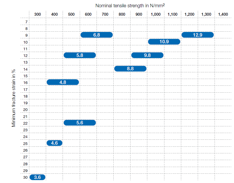 Mechanical and physical characteristics assigned to the strength classes (source: DIN EN ISO 898-1)