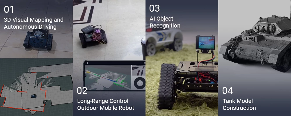 Compared with its predecessor, this tracked robotic platform features an improved power configuration with upgraded metal brush DC motors with gearbox. This upgrade increases the platform's load capacity, enabling it to support up to 3 kg.