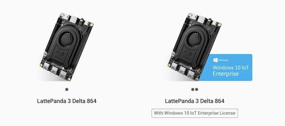 The LattePanda 3 Delta is available in two models. This page presents the LattePanda 3 Delta x86 SBC without Win10 IoT Enterprise license.