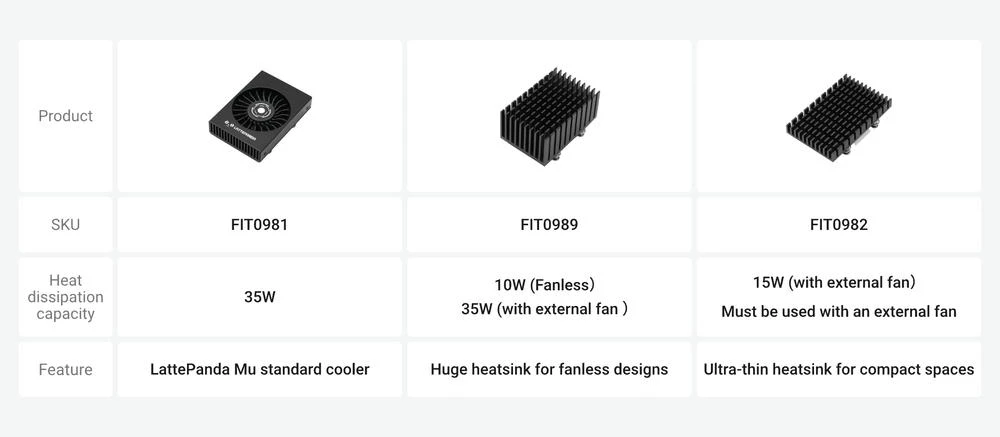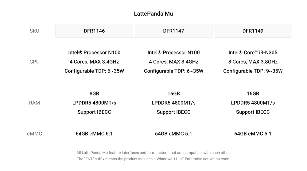 El paquete contiene: 1 x LattePanda Mu - A Micro x86 Compute Module (N305 CPU, 16GB RAM, 64GB eMMC) - DFRobot