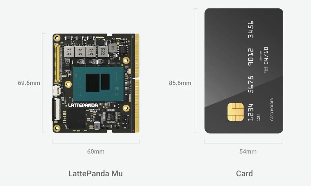 A pesar de su reducido tamaño de 69,6mmx60mm, el módulo informático de bolsillo LattePanda Mu puede integrarse en dispositivos con espacio limitado, ofreciendo un alto rendimiento informático sin ocupar demasiado espacio.